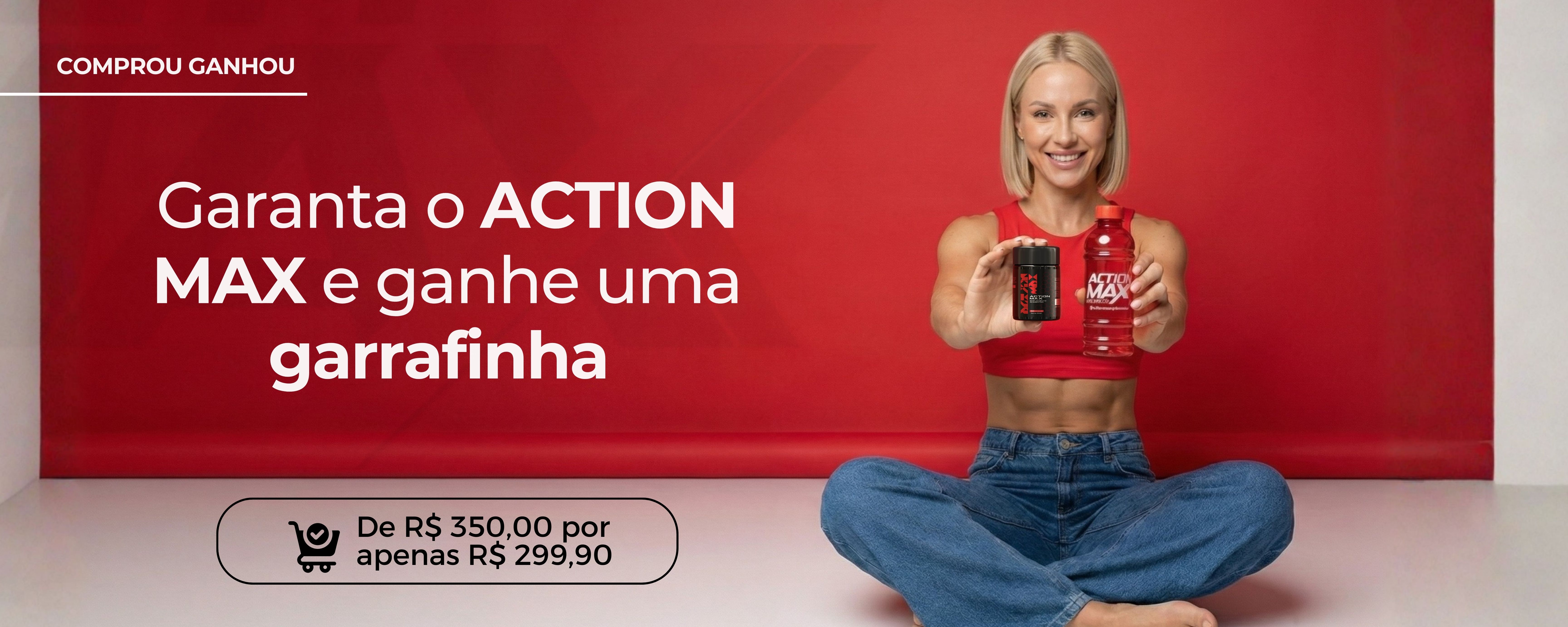 ACTION MAX é um suplemento alimentar (emagrecedor natural) que auxilia na perda de peso, promovendo o emagrecimento saudável. Com ingredientes que contribuem para a redução de gorduras, açúcares e carboidratos, além de acelerar o metabolismo, o emagrecedor natural Action Max Vermelho é ideal para iniciantes ou pessoas mais sensíveis, promovendo resultados visíveis em poucas semanas. E para completar sua jornada, na compra você ganha uma garrafa de água como brinde.