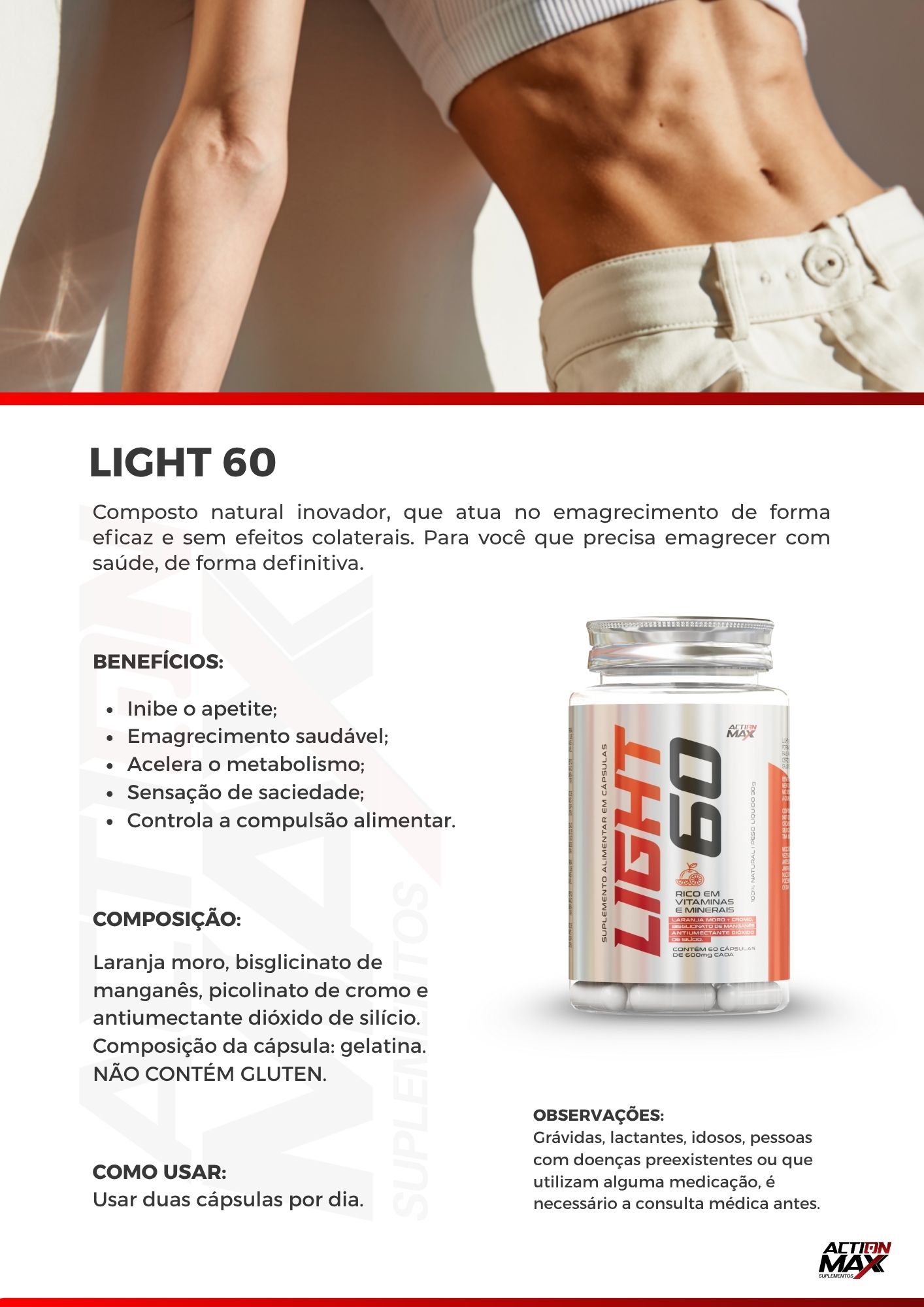 LIGHT 60 atua no emagrecimento de forma eficaz e sem efeitos colaterais. Pra você, que precisa emagrecer com saúde, de forma definitiva e saudável.